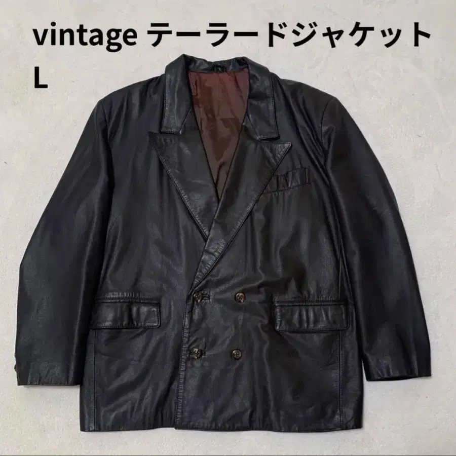 80s~90s 카우 가죽 테일러드 자켓 L 다크 브라운 더블