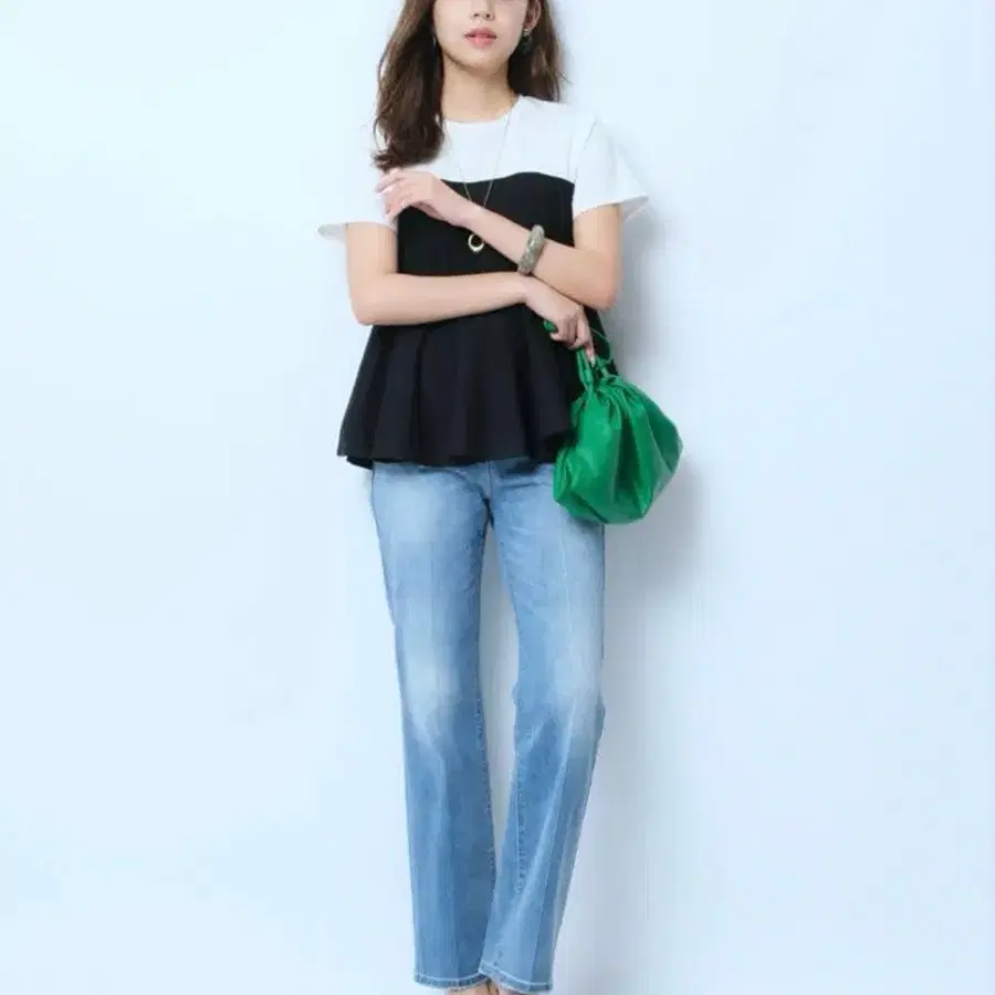 새상품급 JUSGLITTY 센터 프레스 슬림 레그 데님 아르페쥬 스토리