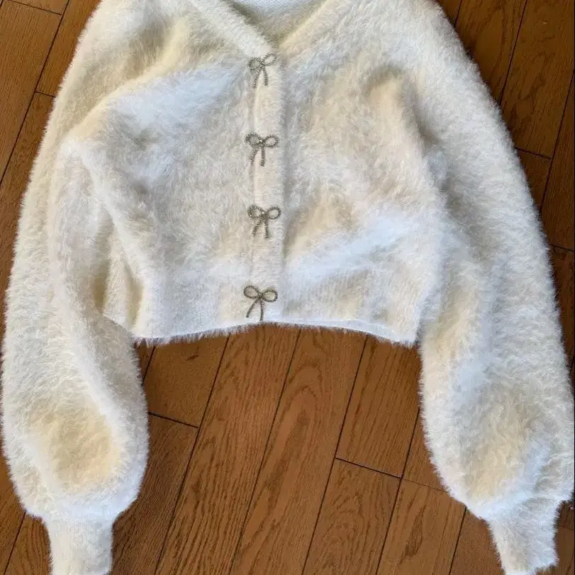 INGNI V넥 리본 버튼 페더 니트 가디건