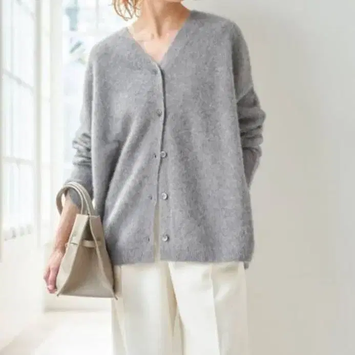 택 포함 새상품 폭스 울 믹스 2WAY 가디건 그레이