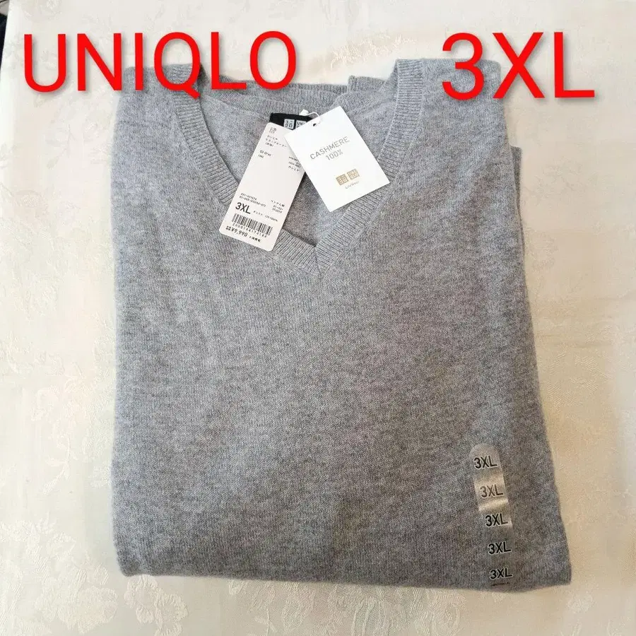 미사용 [유니클로] 캐시미어 100% V넥 스웨터 3XL 택 포함 그레이