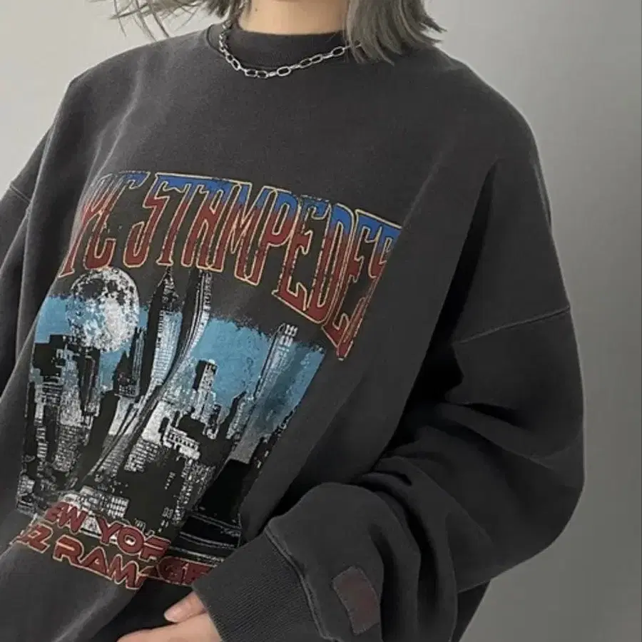Java 속기모 빈티지 프린트 피그먼트 빅 맨투맨 M