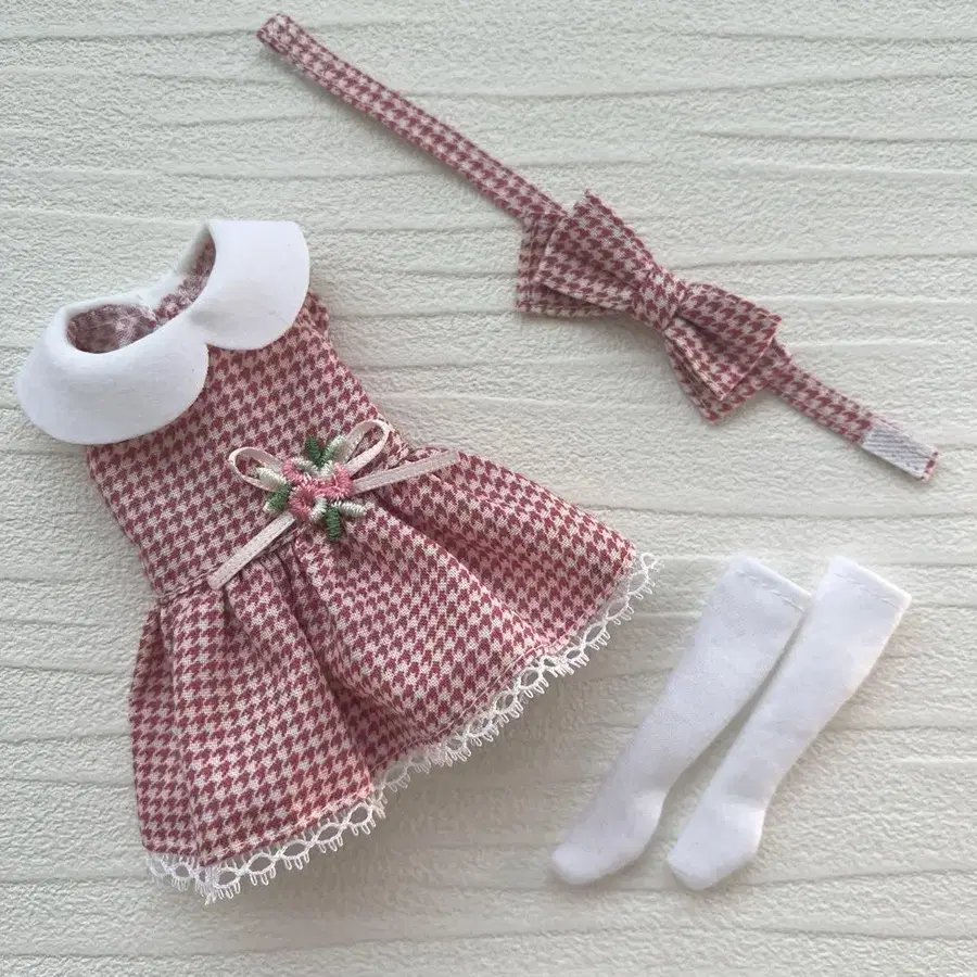 초대 리카짱 의류 세트*1 핑크 하운드투스 원피스 & 리본 삭스