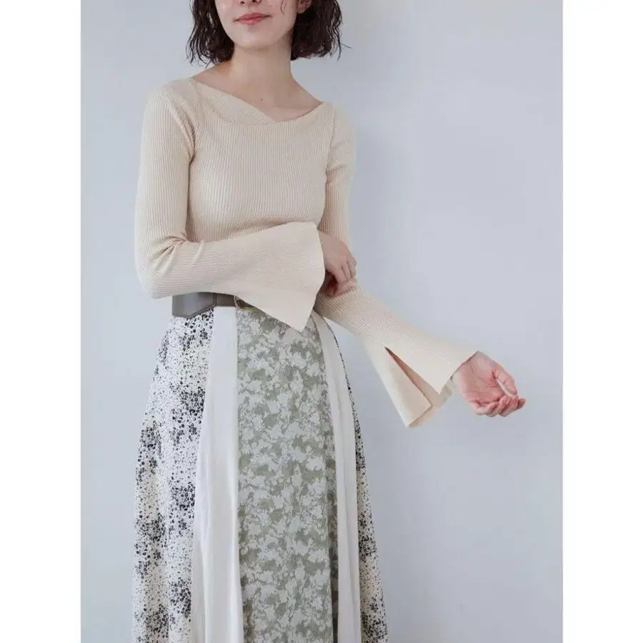 새상품급 라그나문*비대칭 드레이프 플레어 슬리브 니트 아이보리