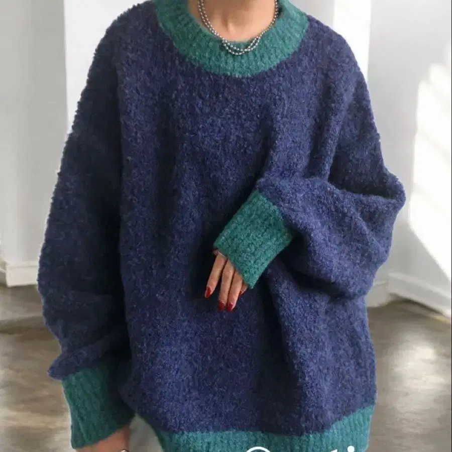 patterntorso 배색 부클 얀 니트 긴팔