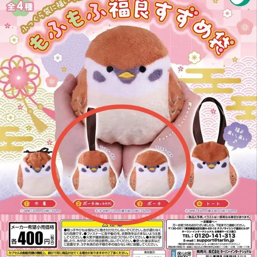 복슬복슬 복을 부르는 참새 주머니 2세트 파우치 (손잡이 포함, 파우치)