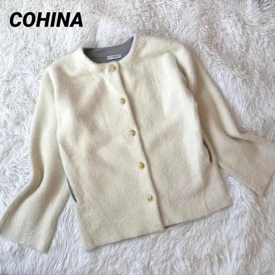 COHINA 더블 페이스 페더 니트 자켓 포멀 골드 버튼