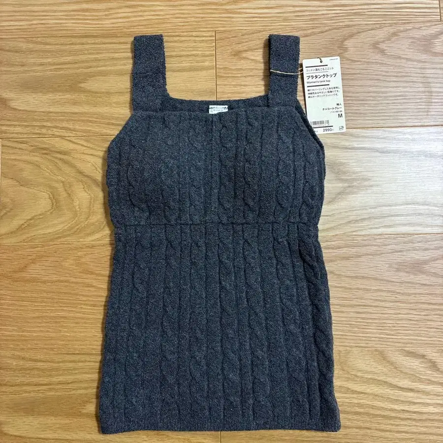 무인양품 코튼 혼방 복슬복슬 니트 브라 탱크탑 차콜 그레이 M