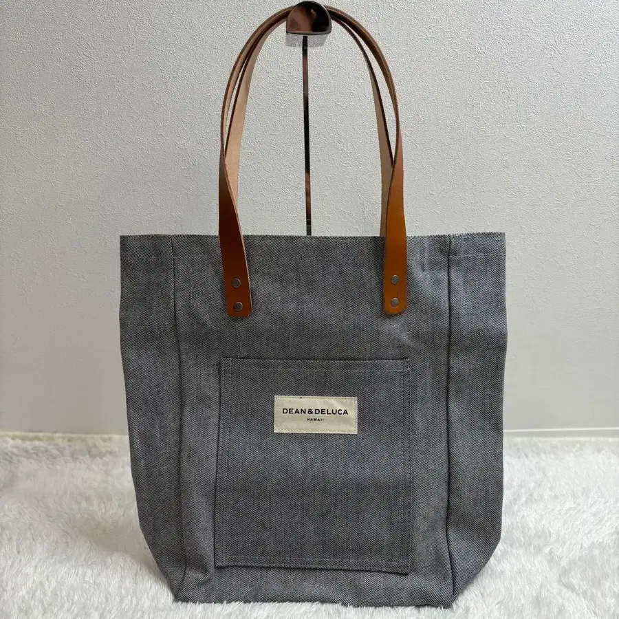 새상품급 딘앤델카 하와이 리버스 데님 토트백 그레이