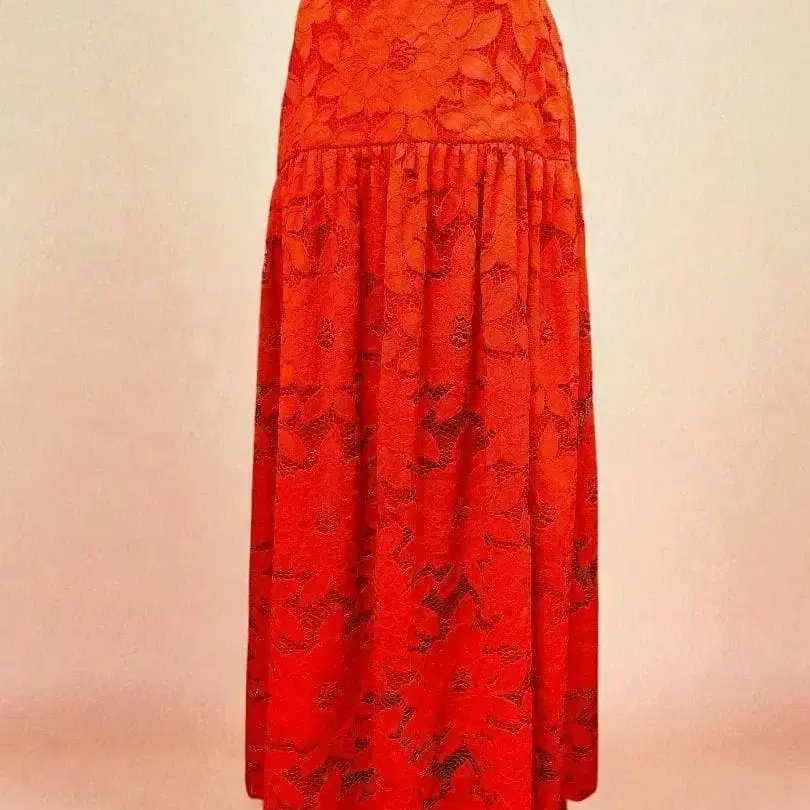 그레이스 콘티넨탈 오렌지 전체 레이스 롱 스커트 밴딩
