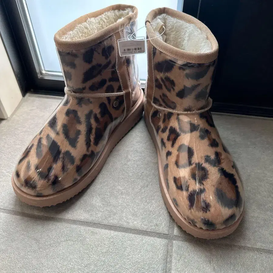 미사용 보관품 레오파드 무늬 충전솜 부츠 레인부츠 24cm 상당