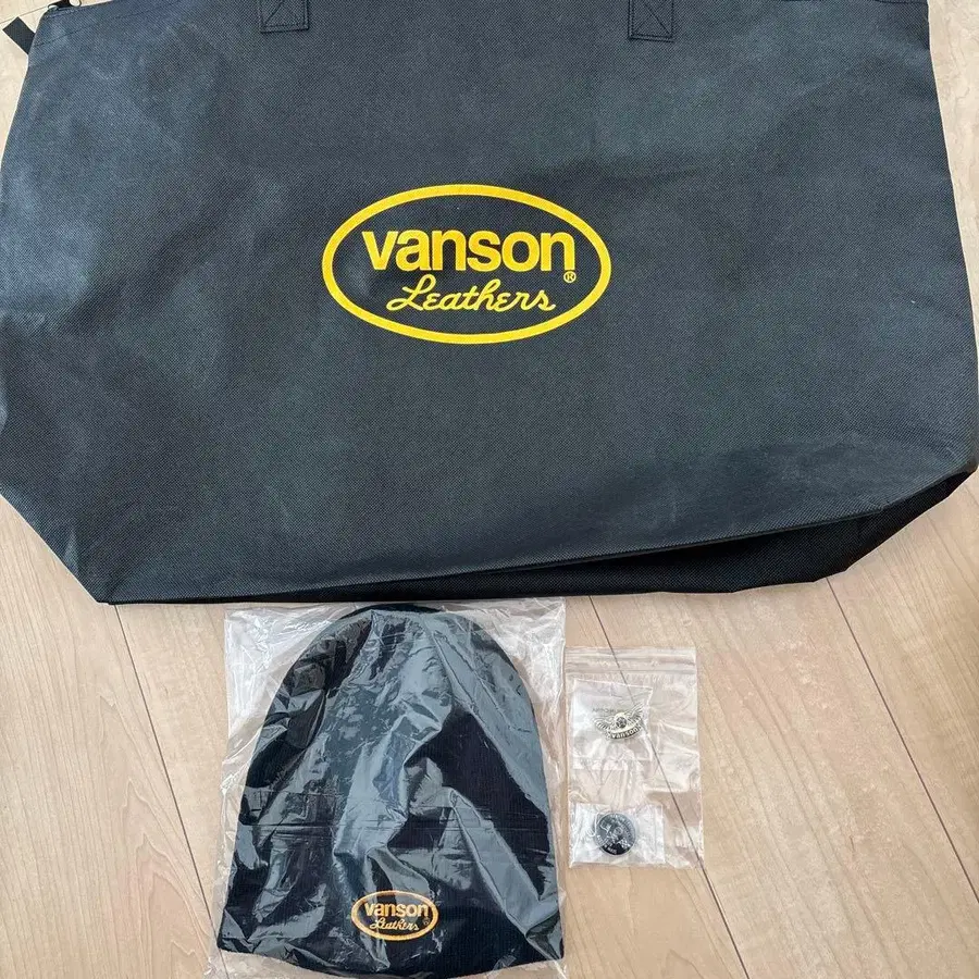 VANSON 니트 모자 & 핀 배지 세트