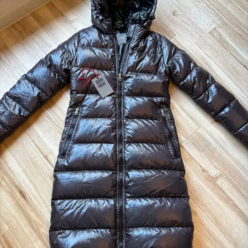 블랙 후드 부착 롱 다운 자켓 택 포함 새상품