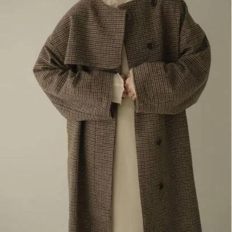 Eaphi 브라운 계열 체크 무늬 롱 코트 새상품급