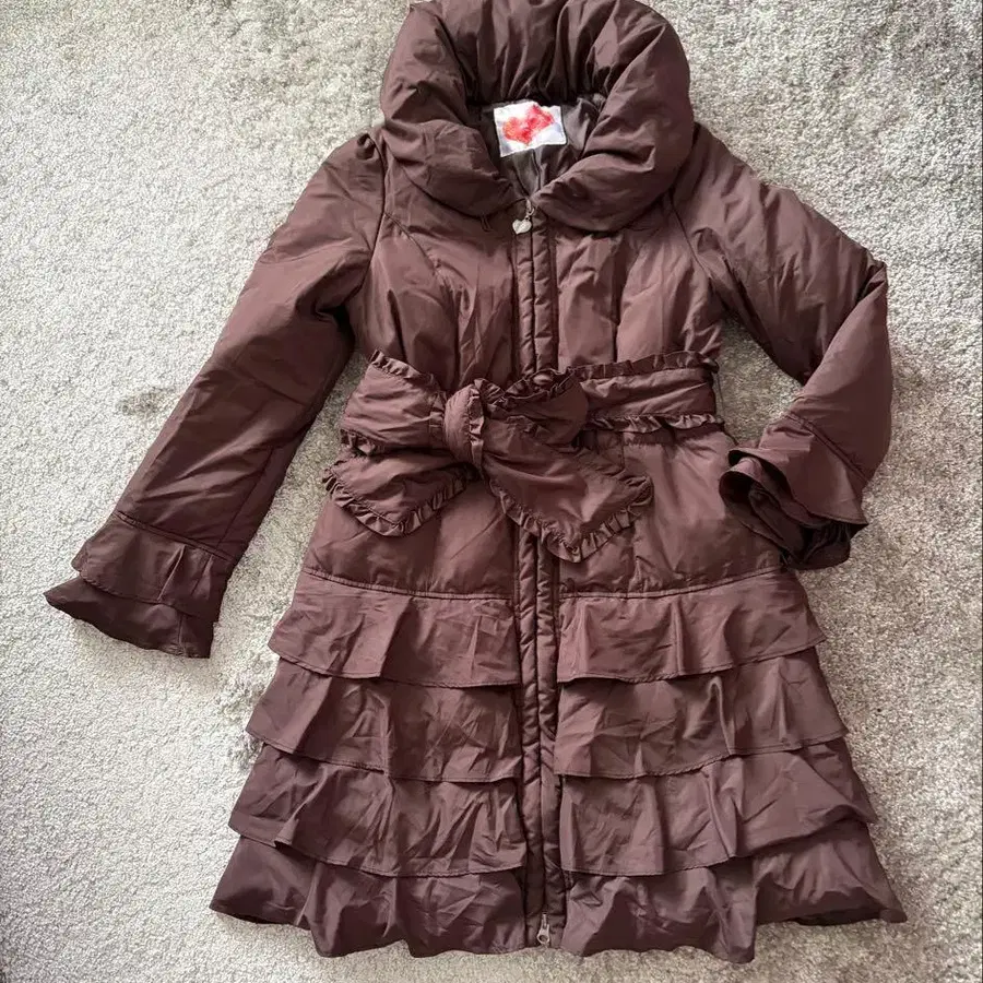 앤드러브 티어드 프릴 다운 코트 브라운 S