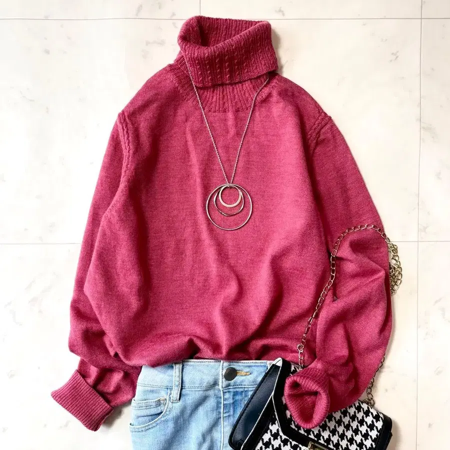 • 노리즈 울 캐시미어 터틀넥 풀오버 니트 핑크
