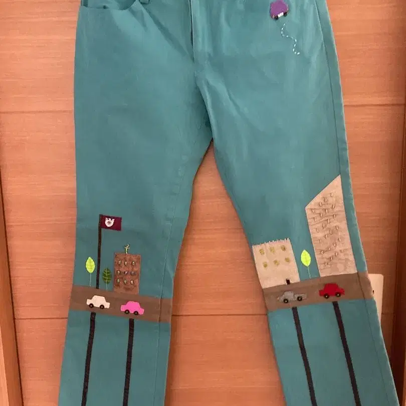 알베로베로 그린 터콰이즈 색상 자수 캐주얼 팬츠