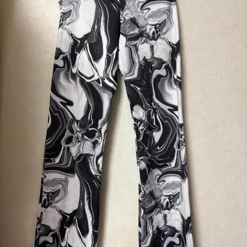 #3859 MIKANO 프리 사이즈 블랙 x 화이트 마블 패턴 레깅스