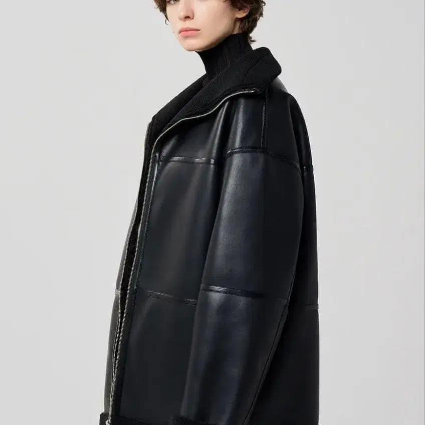새상품급 uncrave 블랙 가죽 무스탕 코트