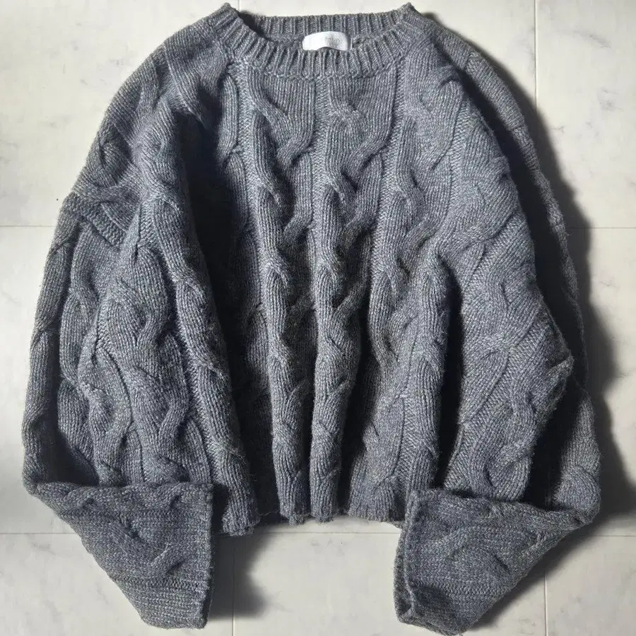 리브 드와 케이블 무늬 루즈 니트 차콜 그레이 스웨터