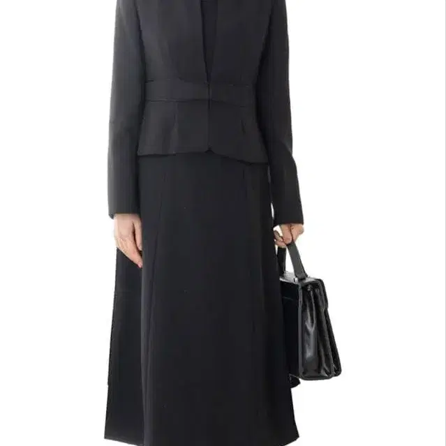 블랙 포멀 상복 예복 노카라 자켓 프론트 오픈 원피스