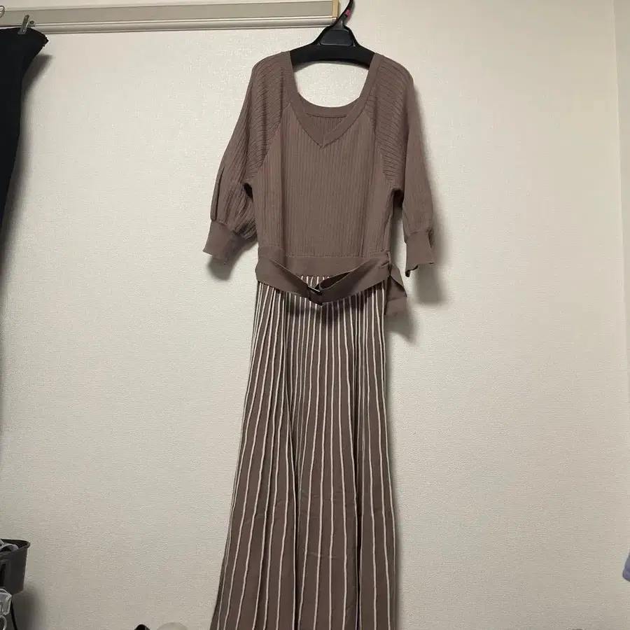 리브 편직 스트라이프 니트 원피스