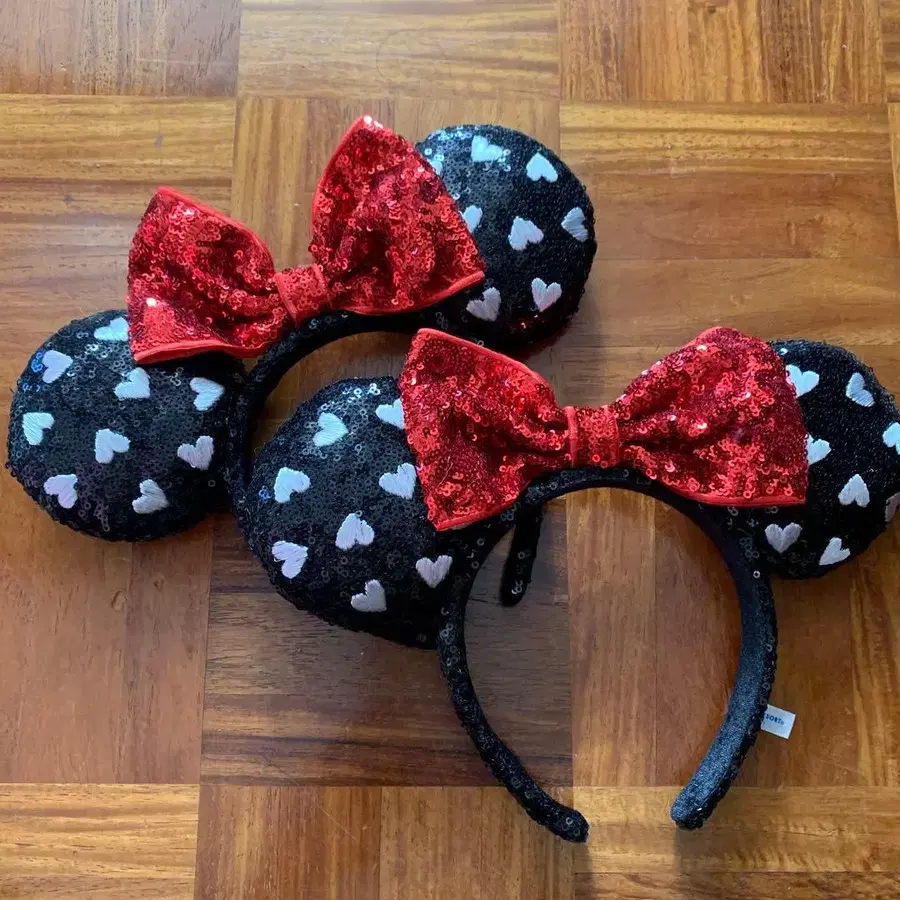 미키 귀 머리띠 하트 무늬 빨간색 리본