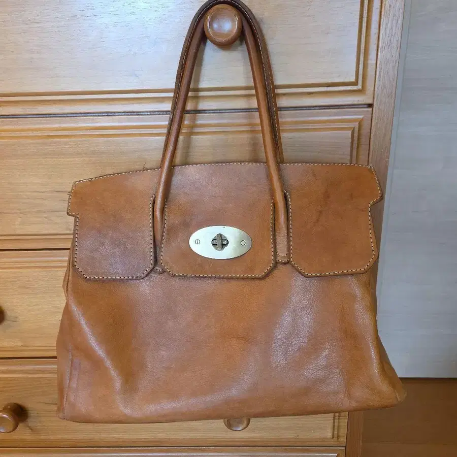 브라운 가죽 토트백 프론트 금장 장식 포함