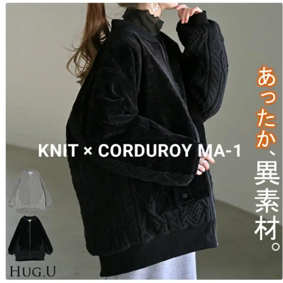 HUG.U 블루종 니트 코듀로이 충전솜 여성용 아우터 블랙