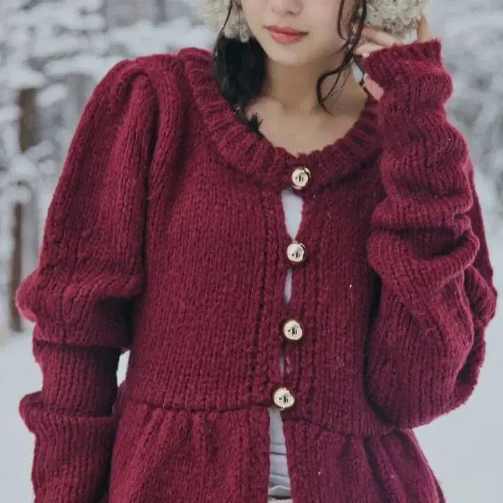 [택 포함 새상품] 앤드콜 골드 버튼 퍼프 슬리브 니트