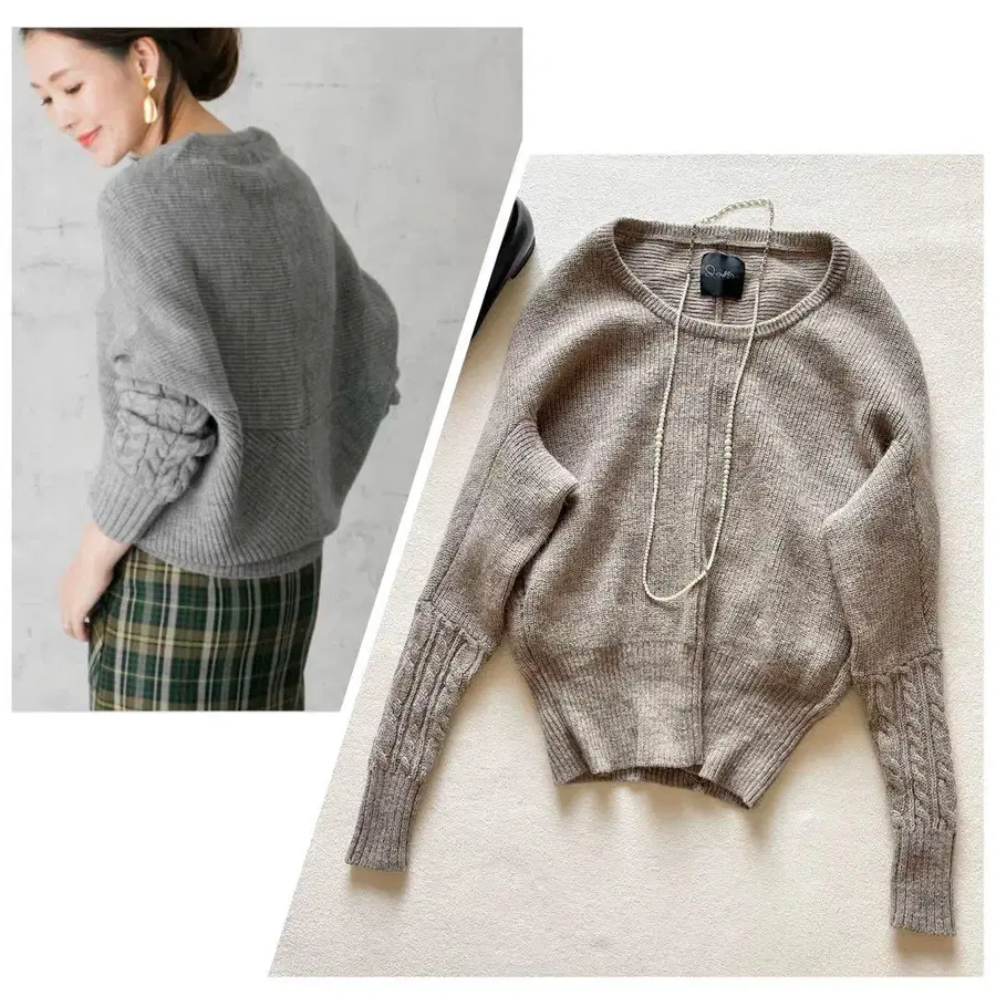 소매의 니트 직물이 매력적이며, 니트의 표정이 살아있는 니트입니다.