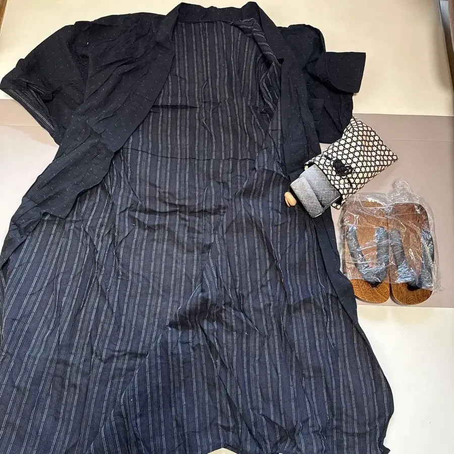 블랙 스트라이프 유카타 세트 L 사이즈