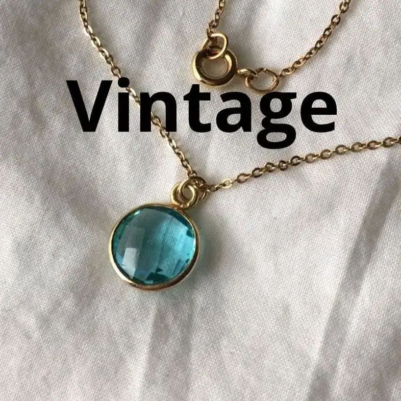 빈티지 블루 토파즈 컬러 골드 목걸이