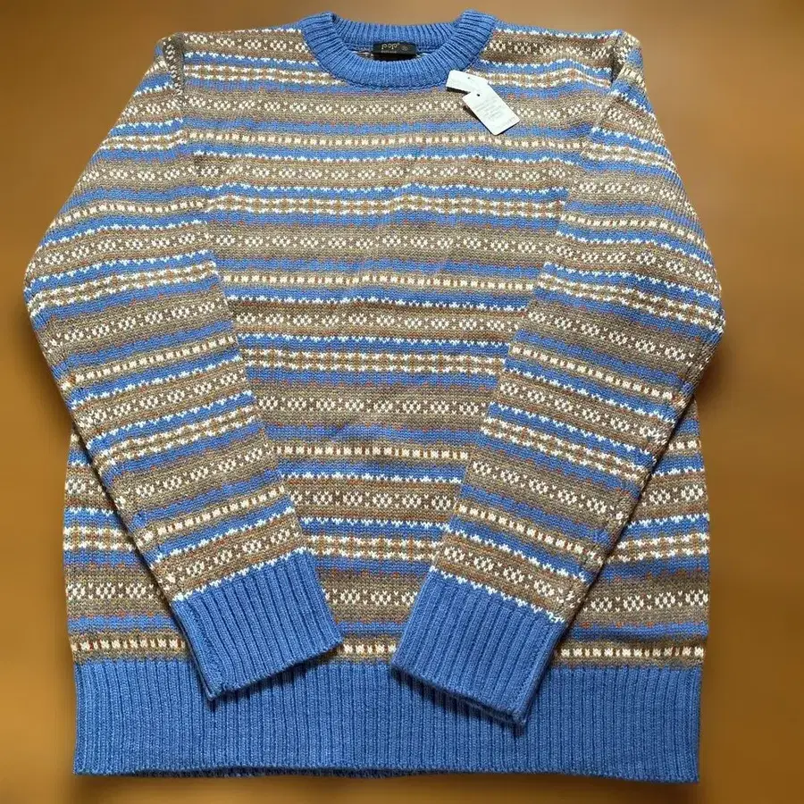 택 포함 파랑 브라운 스트라이프 니트 스웨터 M 사이즈 구제 의류