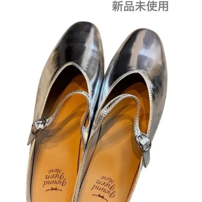 새상품 실버 플랫슈즈 스트랩 소가죽 24.5cm YV-GGS