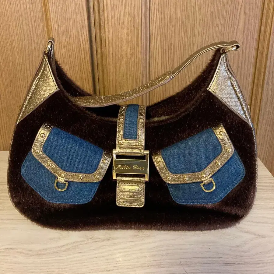 루빈 로사 퍼와 데님 핸드백