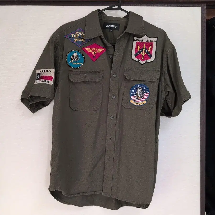 AVIREX 반팔 워크 셔츠 TOP GUN 패치 포함