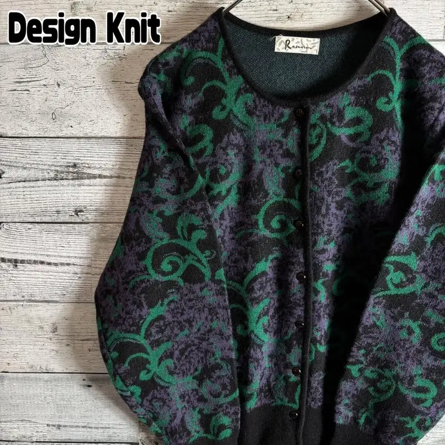 • 빈티지 쇼와 레트로 열쇠뜨기 플라워 모티브 가디건 니트