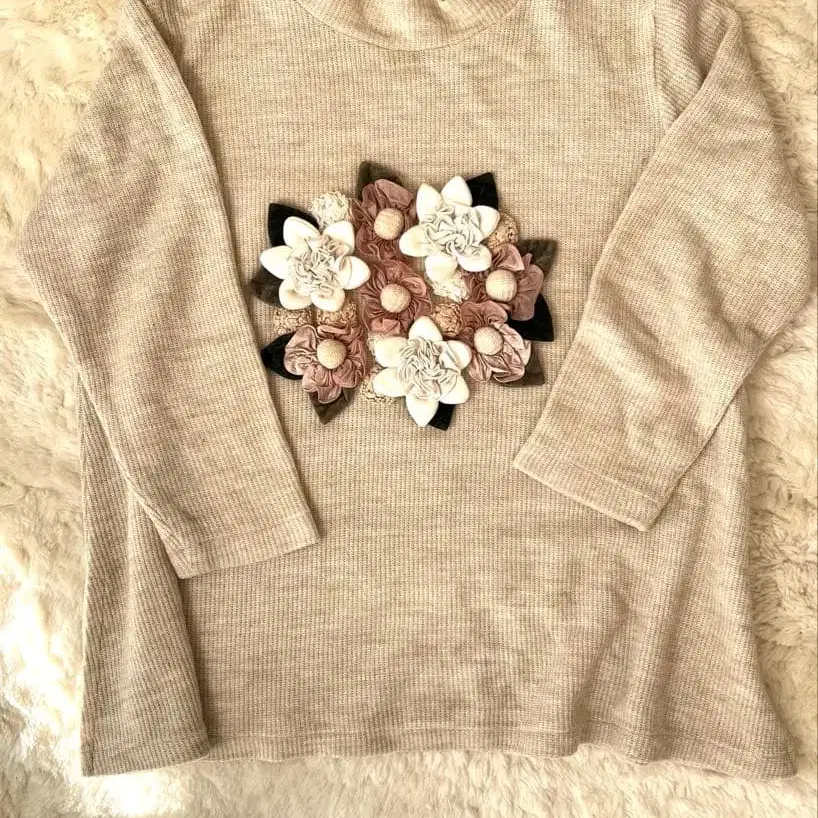 연말연시 외출 홈파티용 꽃 리스 베이지 리브 긴팔 상의
