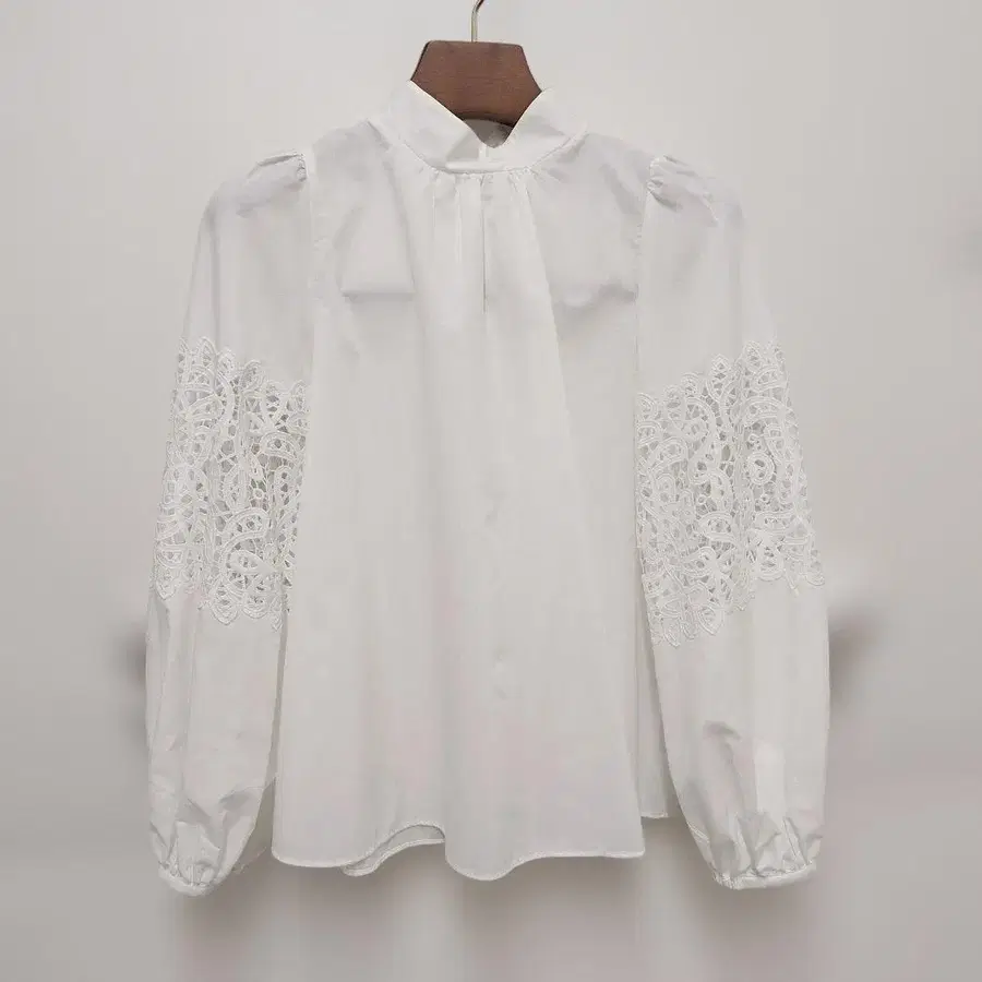드로어 슬리브 리본 레이스 블라우스 컷워크 자수 밴드 카라