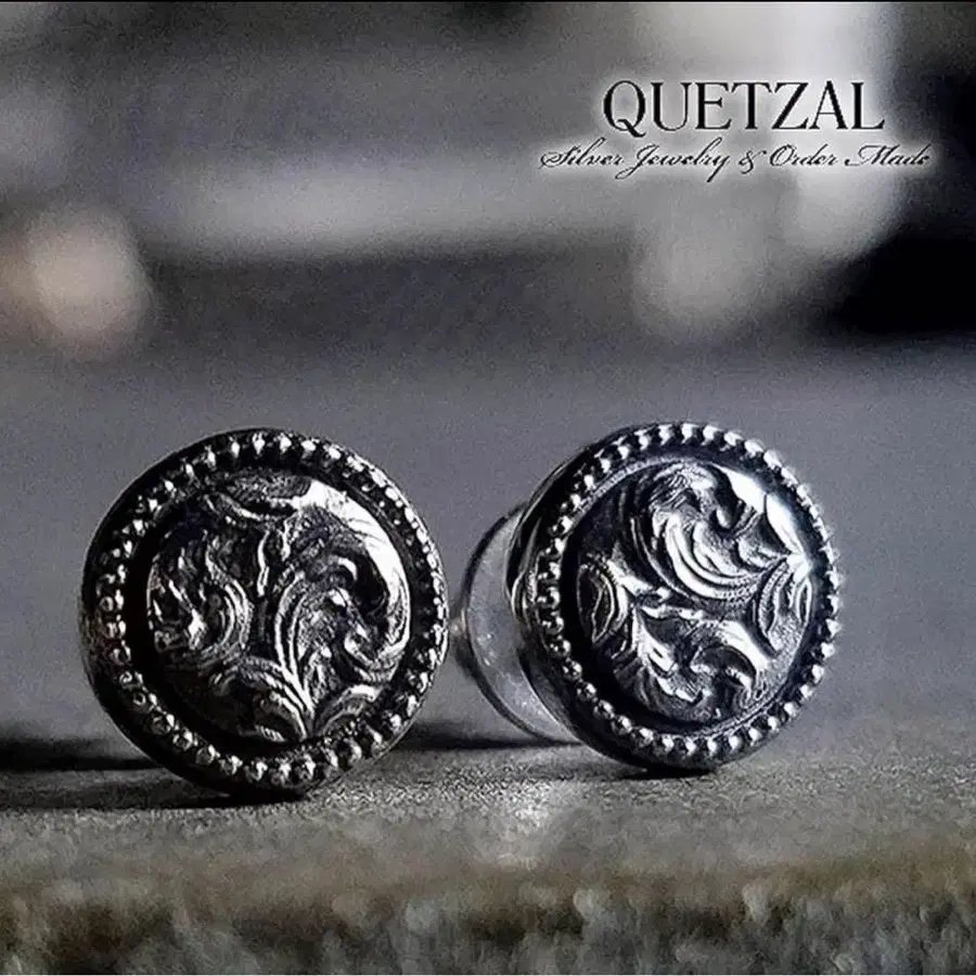 QUETZAL 장식적인 실버 스터드 귀걸이 양쪽 귀