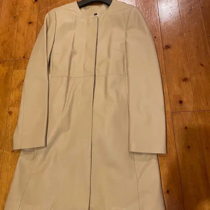 램 가죽 베이지 롱 코트 사이즈 66 노카라