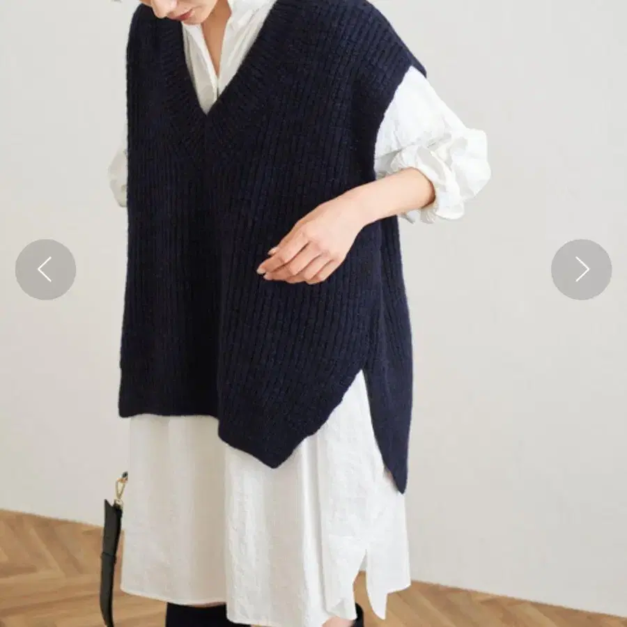 프레임워크 미들 게이지 V넥 베스트 니트 베스트 네이비