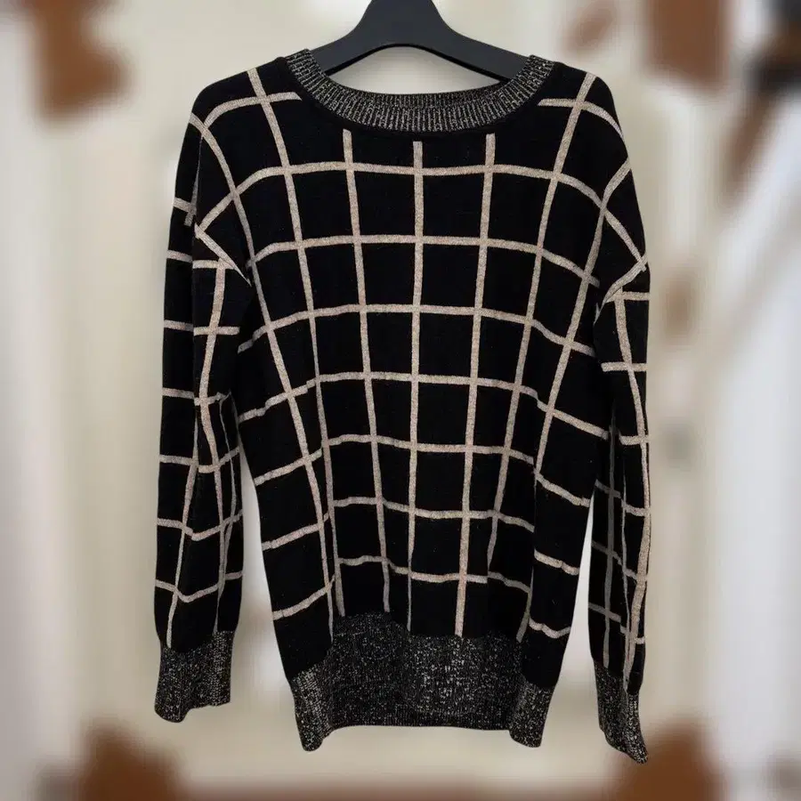 저널 스탠다드 니트 여성용 프리 사이즈 체크 블랙 M