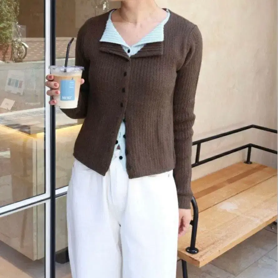 레이어드 스타일 리브 니트탑 브라운 titivate 미사용 택 포함