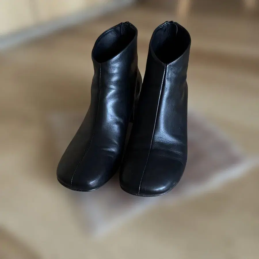 MOHI 가죽 블랙 부츠 중간 힐 지퍼 포함