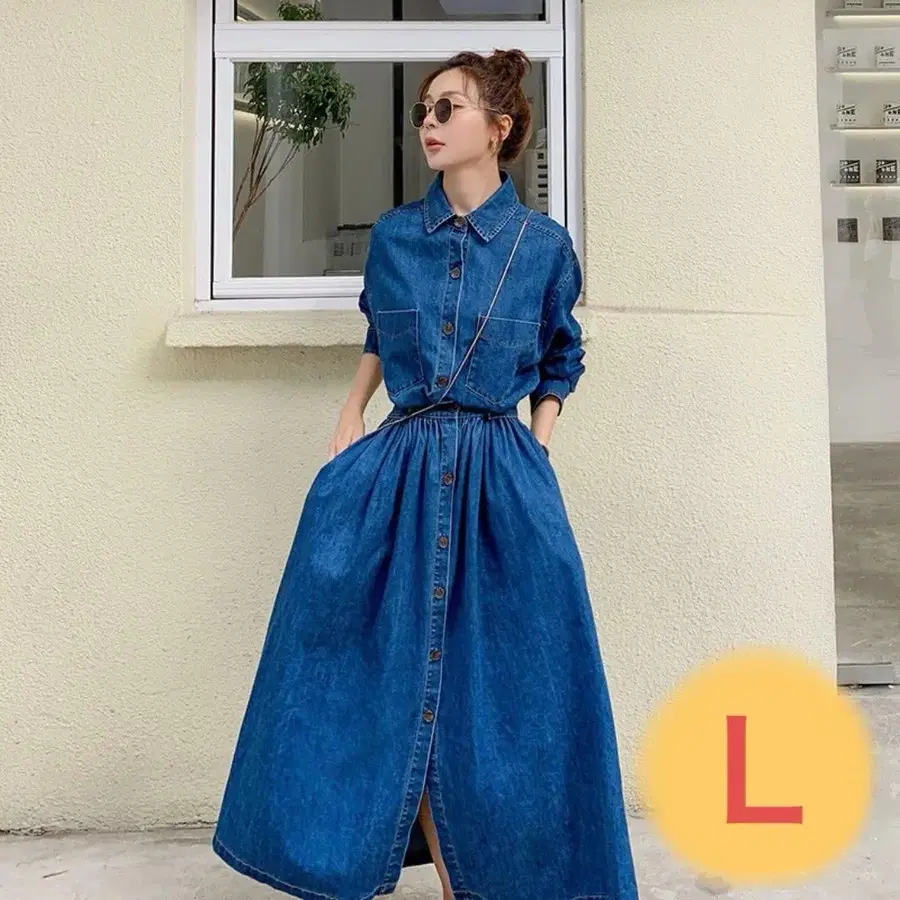 마지막 1점! 데님 원피스 롱 한국 체형 커버 가을 럭셔리