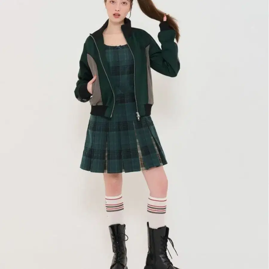 TINA:JOJUN 그린 플리츠 절개 미니 원피스