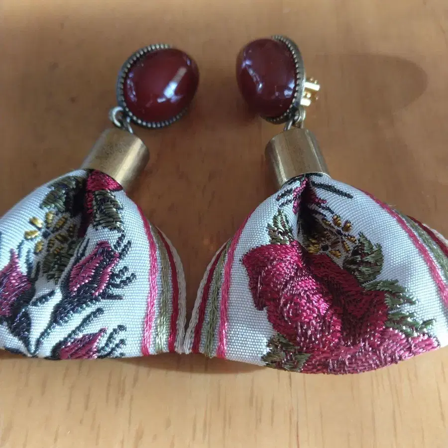 빈티지풍 빨간색 꽃무늬 자수 귀찌