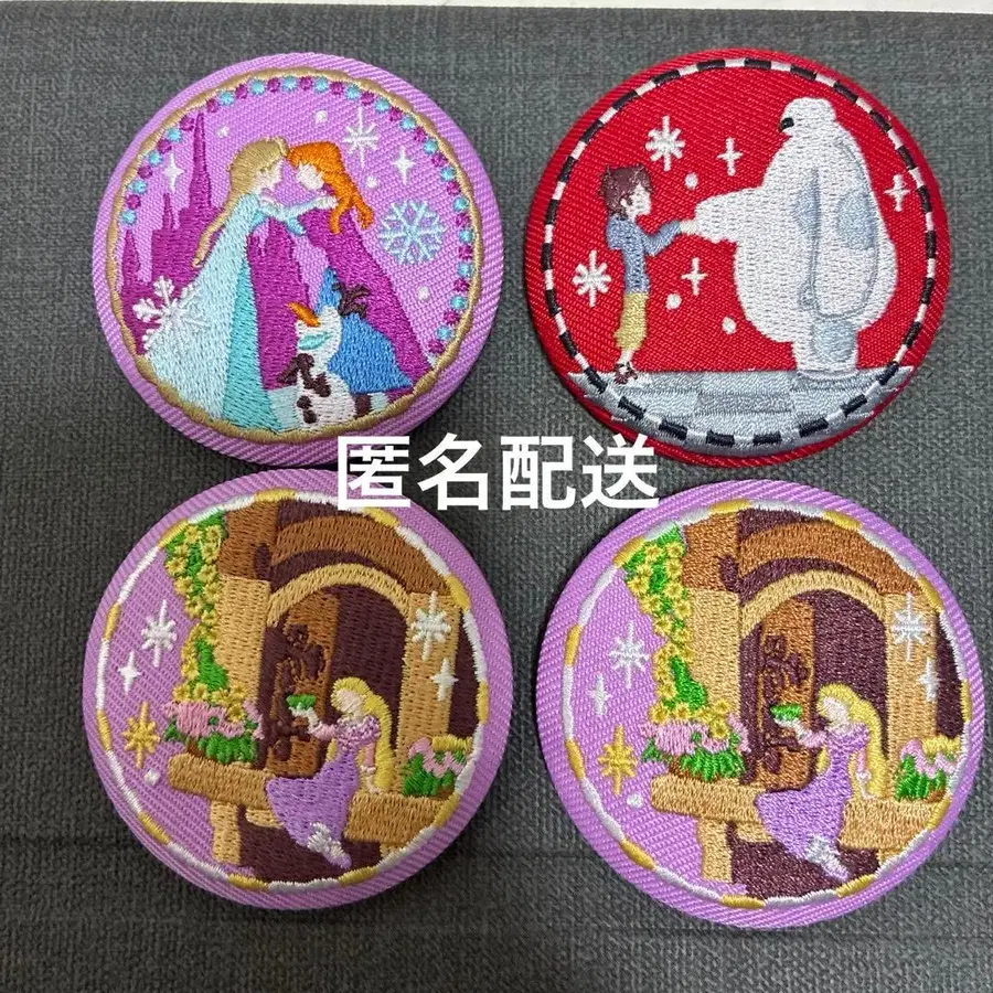 디즈니 자수 캔뱃지 베이맥스 안나 라푼젤 4개 세트